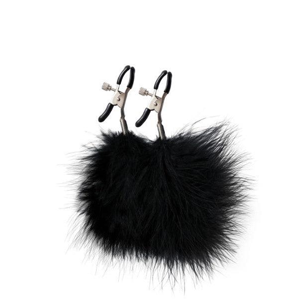 Elegantne štipaljke za bradavice sa dekorativnim crnim peruškama pružaju kombinaciju stimulacije i vizuelnog efekta.